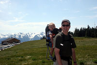 Olympic National Park, Hurricane Ridge• July 4, 2006 Olympic National Park is about 30mi from the place we stayed at in Port Townsend. We went up to Hurricane Ridge where Jordan saw deer, eagles and other wildlife. Jordan also went for a short hike on Dad's backpack carrier where he eventually fell asleep. Related links: Port Townsend, 4th of July, Blueberry Picking, Visit w/ Family in WA |