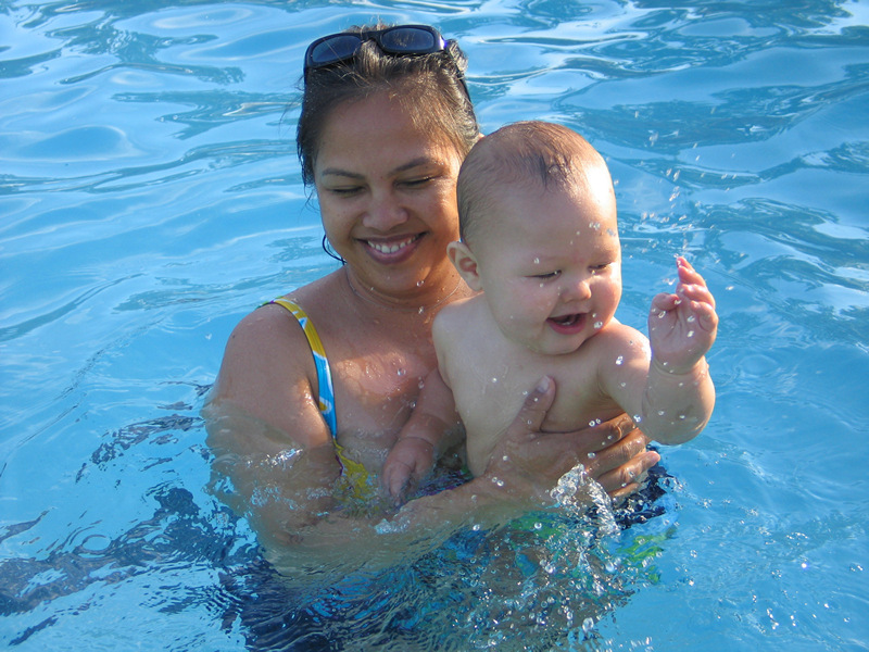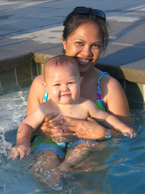 Soaking up the afternoon sun at the Oaks Club pool, where Jordan will be taking swim lessons soon! |