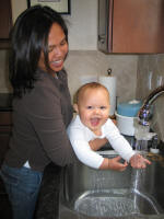 Playing in the water is one of Jordan's favorite things to do. Here he is splashing and washing his hands in the kitchen sink, and loving it! |