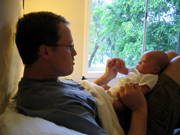 2 days old, hanging out with Dad |