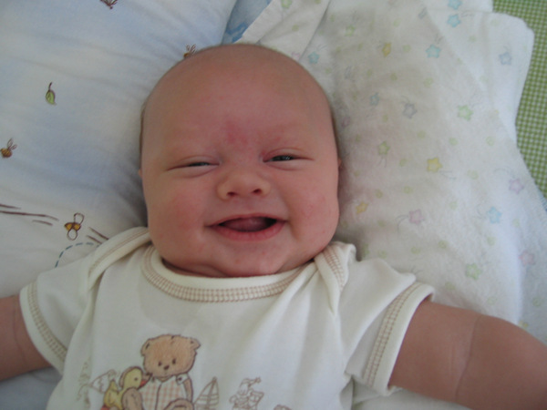 Playing with Dad, 1 month old today! |